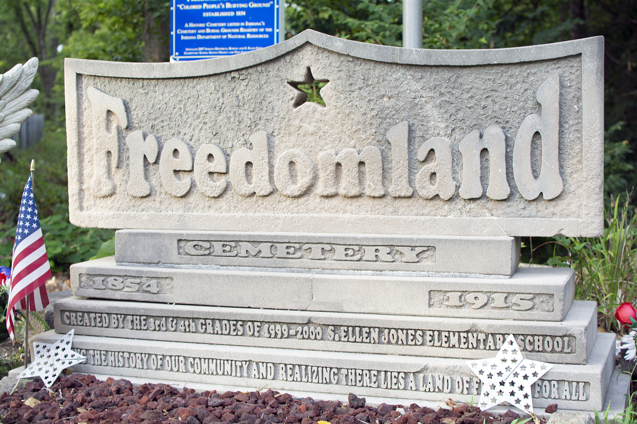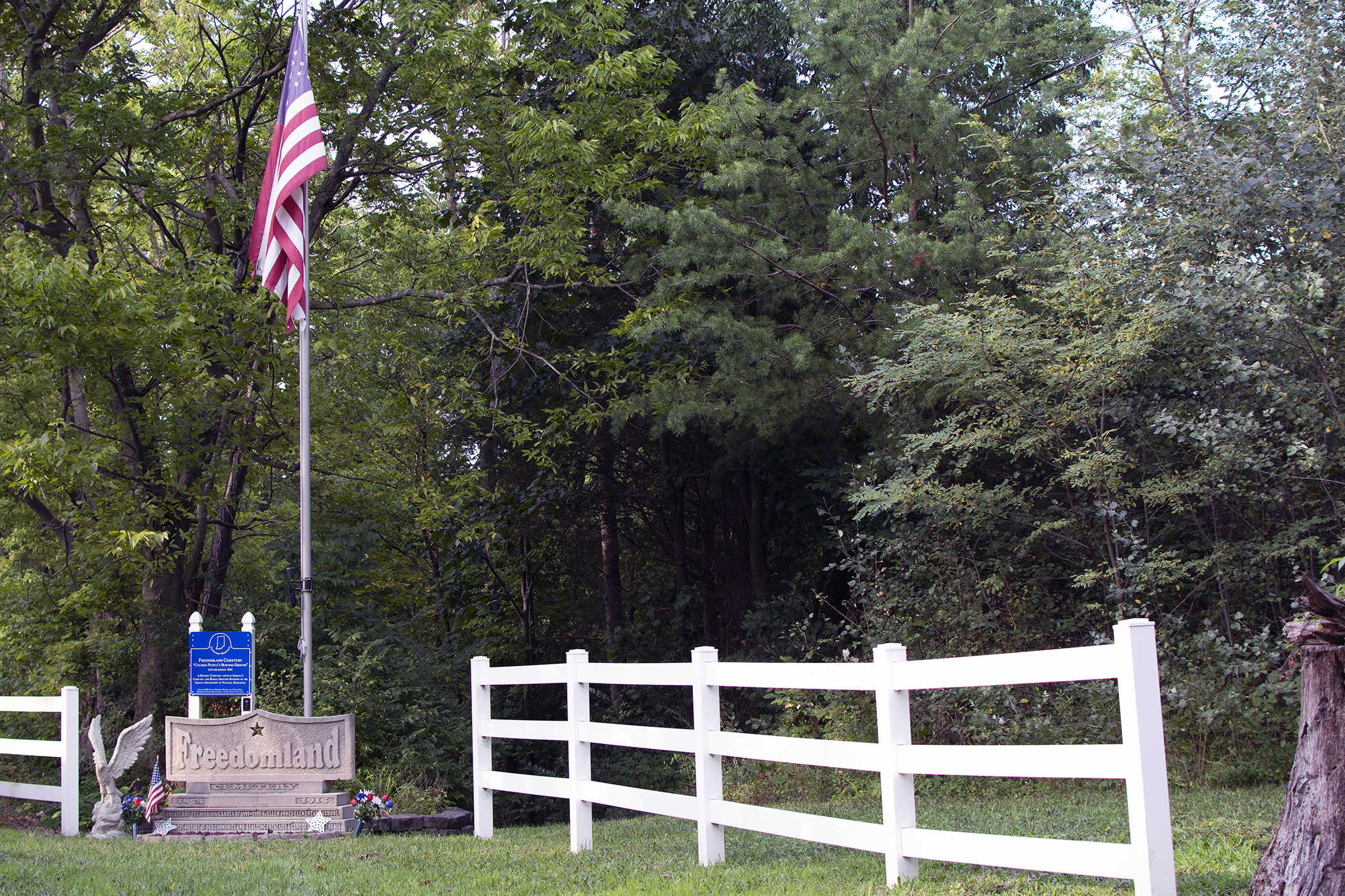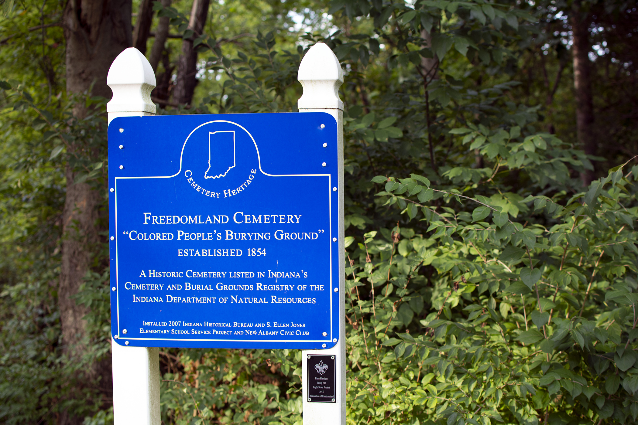 Several hundred yards off Paoli Pike, at the base of a wooded valley, there are hundreds of grave markers. From the 1850s to the early 20th century, Freedomland served as the main burial ground for African Americans in New Albany. “Conservative estimates put the total number of burials around 300. The last internment is believed to have taken place in 1917.”