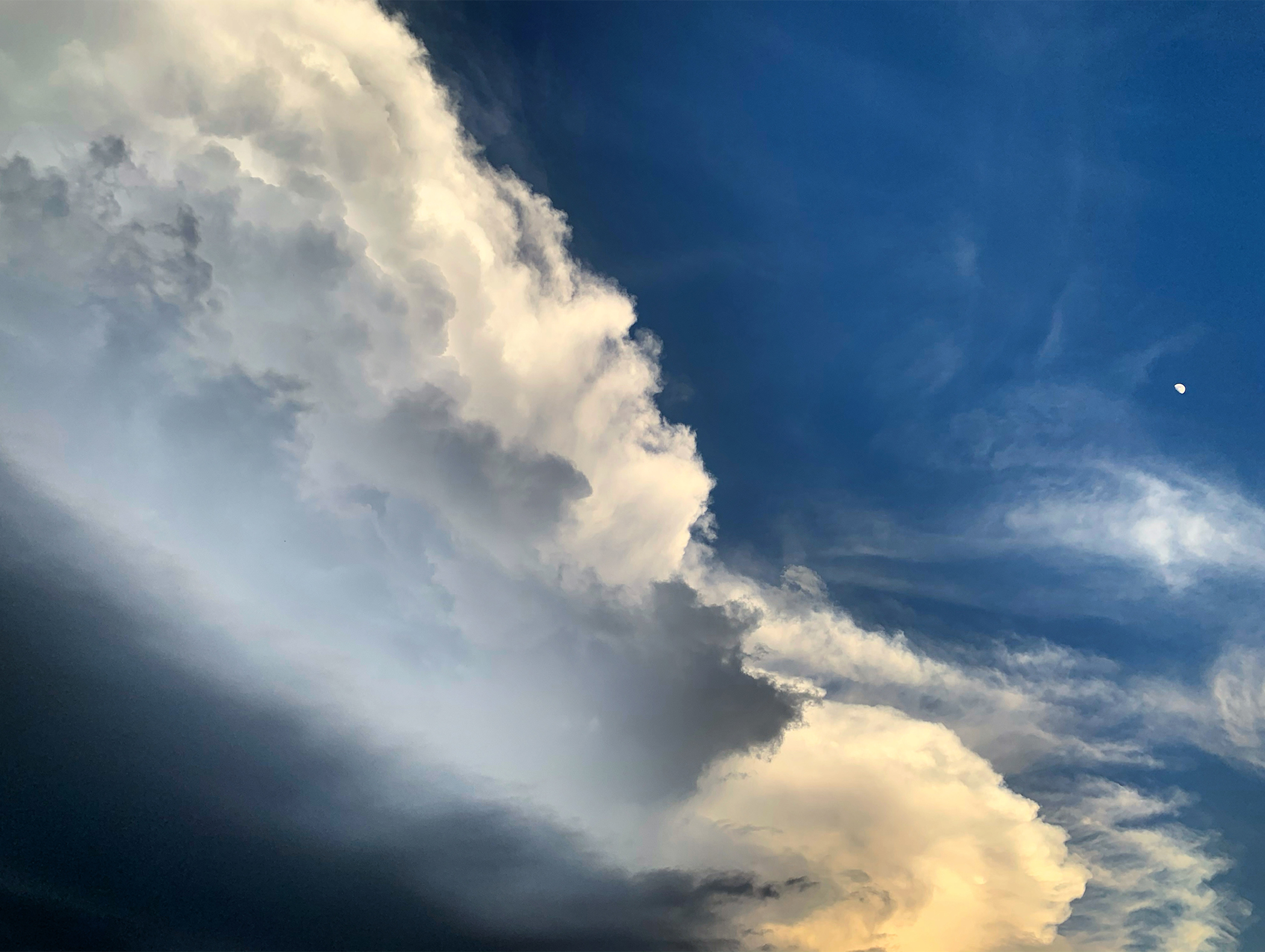 Storm, thunderhead, Summer blue, and the moon, all #shotoniPhone