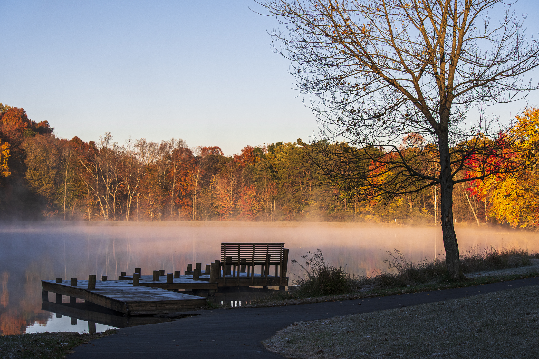 27° wasn’t cold enough to keep the rising sun from setting the trees on fire • Mount Saint Francis • Floyds Knobs, Indiana