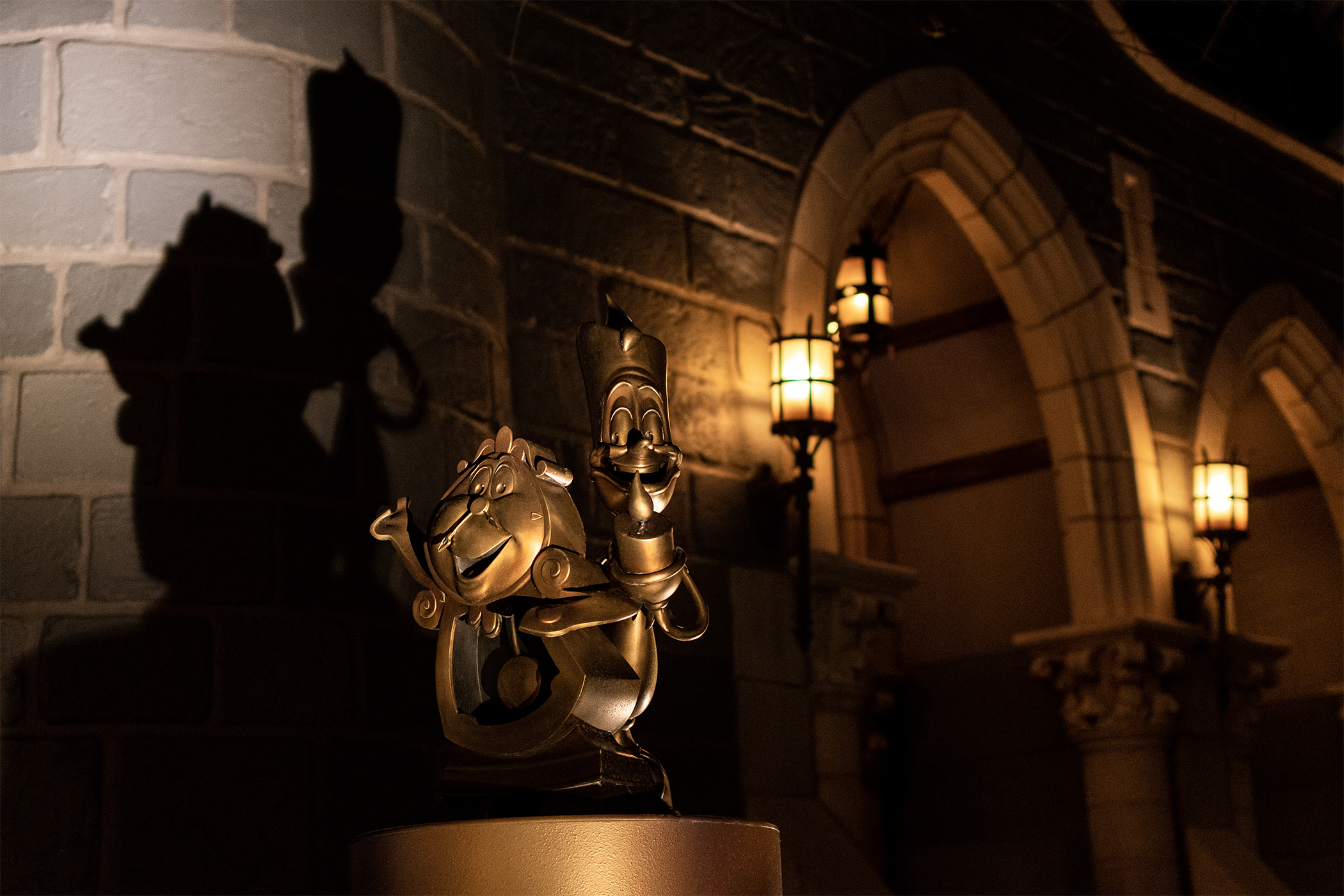 Disney’s Magic Kingdom • Cogsworth and Lumiere, patiently waiting for the last guests to leave…