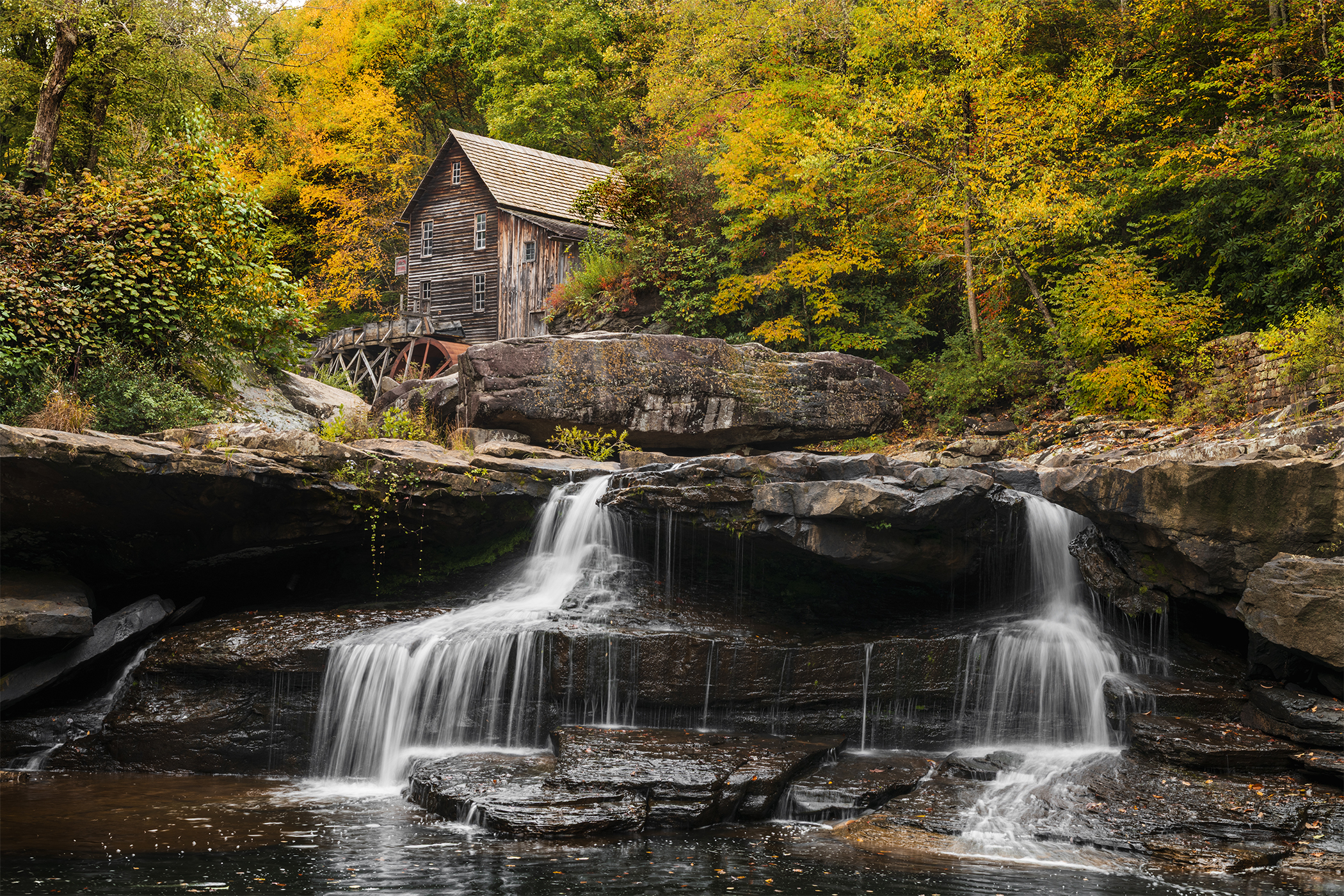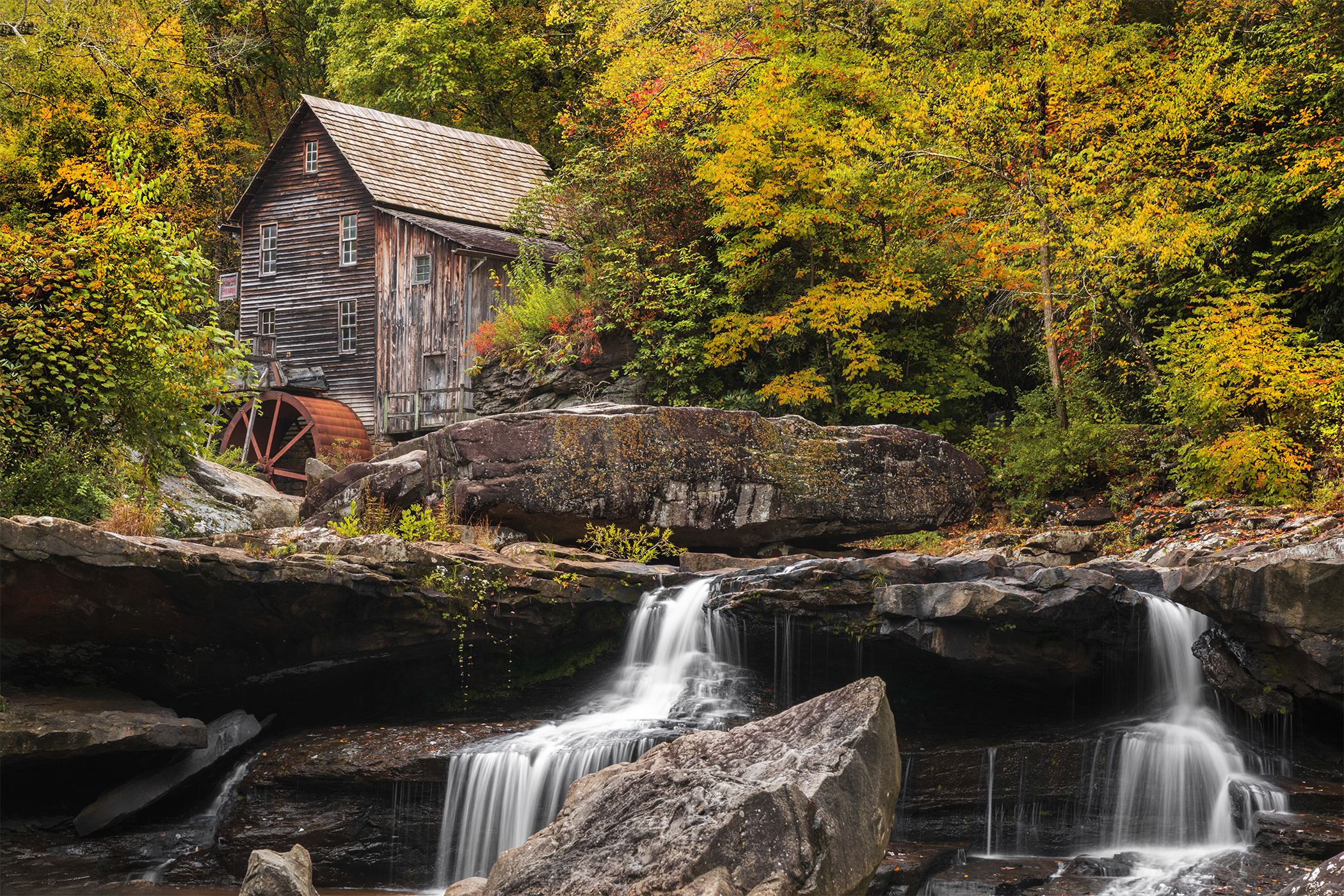 Visiting the Glade Creek Grist Mill in West Virginia’s Babcock State Park has been on my photography bucket list for several years and I was finally blessed with the perfect window this Fall. A few days’ worth of rain after a long dry spell. Overcast skies. Virtually deserted after several hours of heavy rain to start the day. Late-morning mist to make the emerging Autumn colors pop. It was absolutely perfect… long enough to get these shots. Then, within a matter of moments, the clouds grew dark, the winds began to whip, the heavens opened up and I got absolutely, positively drenched packing up and hiking out of the riverbed. Had I swam in the creek for half an hour, I wouldn’t have been more wet by the time I got back to my car.