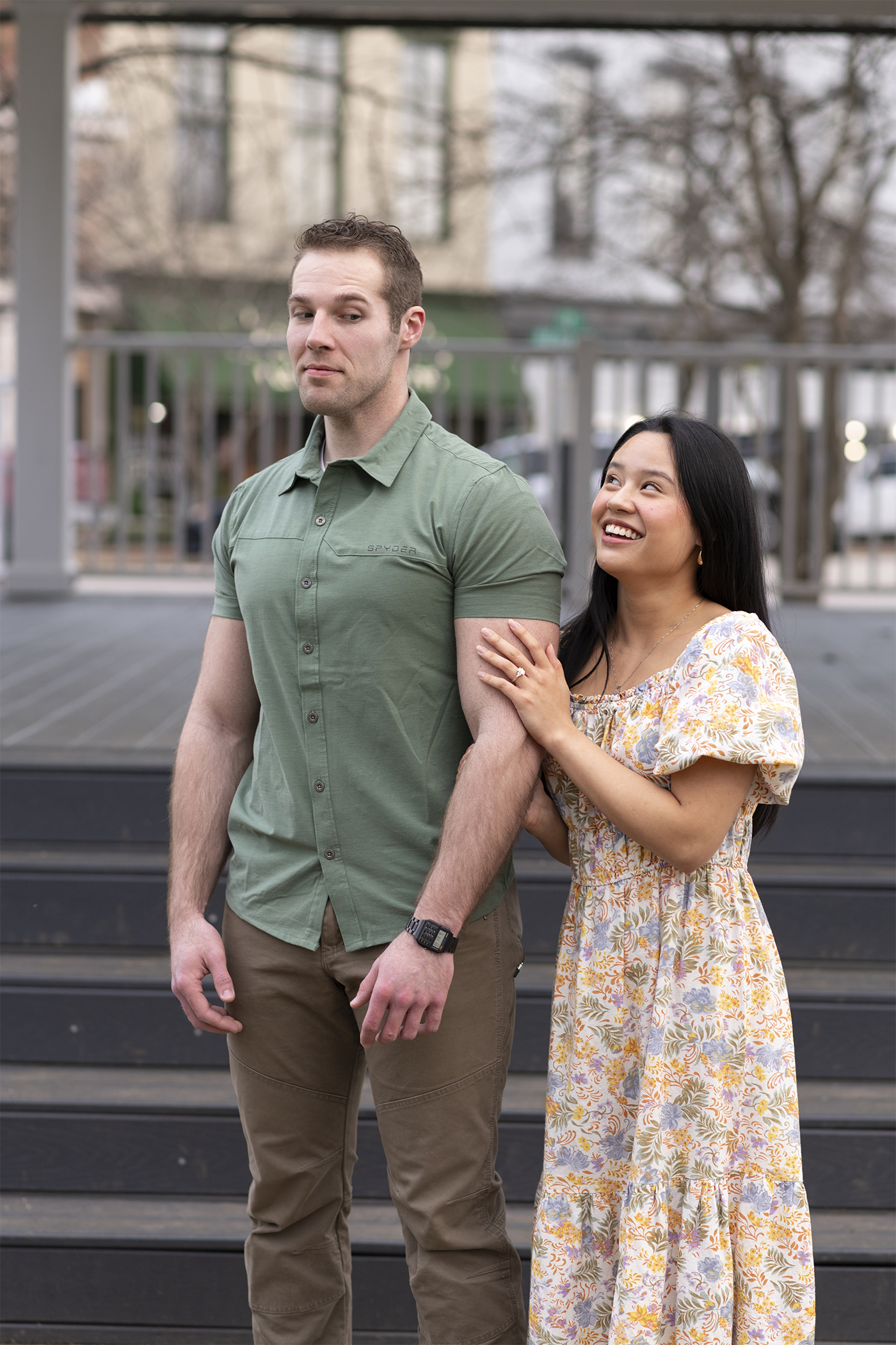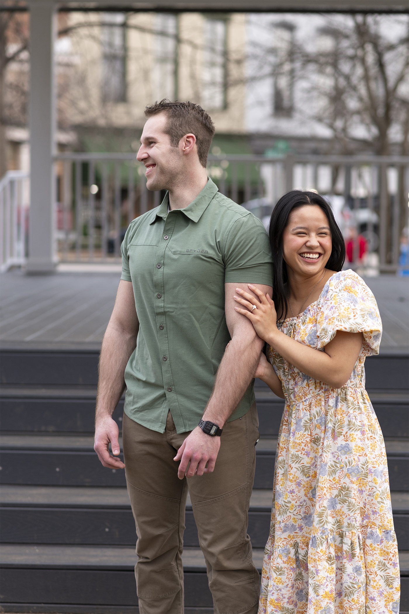 Samantha and James picked a perfect, unseasonably warm Winter evening to celebrate their engagement in downtown Corydon, Indiana. We’ve loved having the opportunity to watch them fall in love and grow as a couple. Just a few minutes with them and you’ll instantly be able to tell that they’re head over heels in love, and that made this beautiful evening fun and easy.